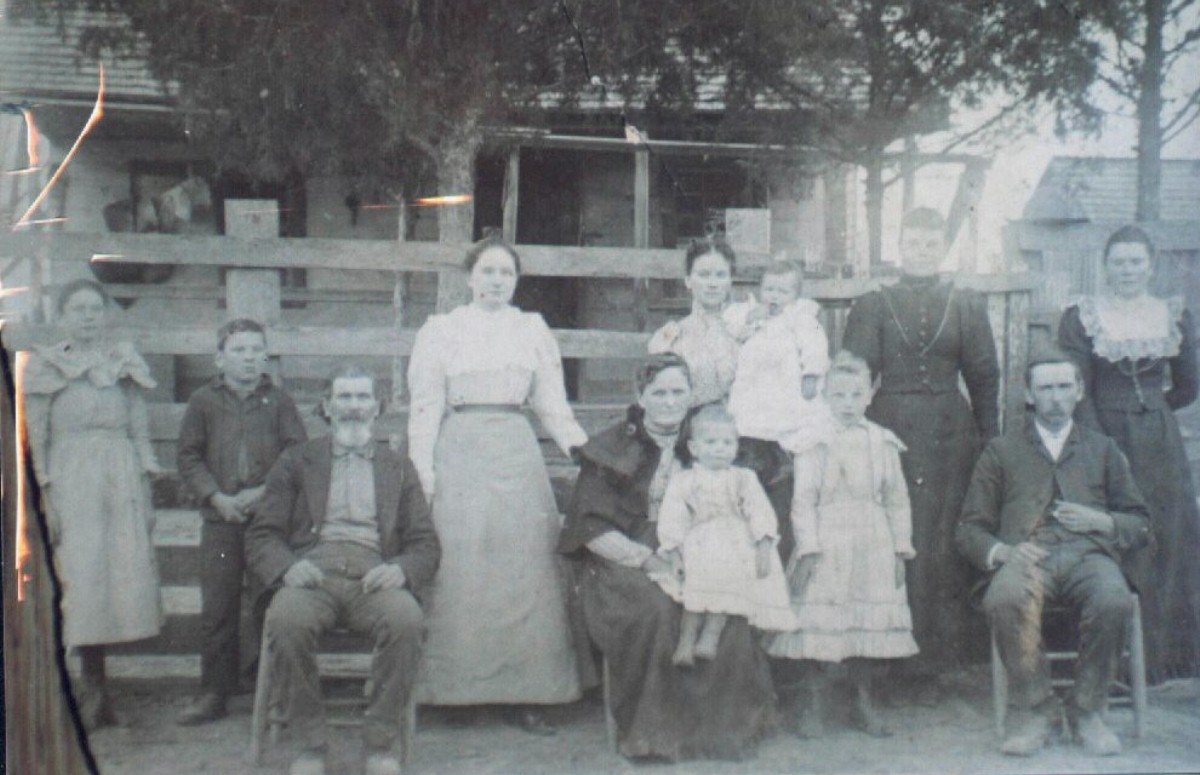 Left to Right : Denna Russell, David Russell, George Russell , Lura Russell, Sara Arnold Russell & baby, Mamie Jackson Russell , and little girls, Ema Russell Gramling, Mem Russell, Mary "Pat" Russell