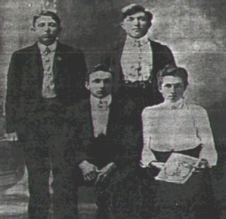 The children of Joe and Hester Higgin: standing, Wesley and Ezra; seated , Hiram and Eva Pillow