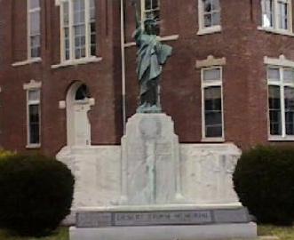 Greene County's own Statue of Liberty was born as part of a memorial to the 40 men who died in what was then know, simply as "The World War."After nearly 73 years and the addition of the names of the dead of four subsequent wars, the Greene County War Memorial grew into a landmark which this week attained a niche in the National Register of Historic Places. The memorial's bronze statue center piece, a replica of the original in New York Harbor, was sculpted in 1920 by John Paulding of Chicago and dedicated November 11, 1924, Armistice Day, as a crowd of 5,000 looked on... Local historian Kitty Sloan, who called the statue "very distinctive," gives most of the credit for its attaining national register status to Patrick Zollner. The former Marmaduke resident heads the National Register of Historic Places program for the AHPP, which also conducted a "Save Outdoor Sculpture!" survey a few years ago. Of the eight World War I memorial sculptures in Arkansas, Greene County's is the only one that doesn't include a "doughboy" soldier, according to the Historic Preservation Society... The complete article can be found in the July 3, 1997 Paragould Daily Press. |