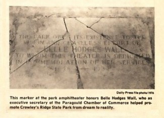 | This marker at the park amphitheater honors Belle