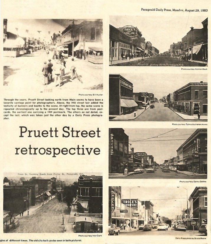 Photo Caption Top: Through the years, Pruett Street looking north from Main