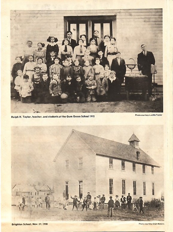 | top left photo: Ralph H. Taylor, teacher, and students at the Gum Grove School 1912 photo courtesy: Lucille Taylor bottom left photo: Brighton School, Nov. 27, 1908 photo courtesy Olah Waters top right photo: Union Hill School, Aug. 12, 1897 photo courtesy: Dr. C.W. Starnes bottom right photo: Pleasant Hill School about 1910, John Isaac Horton, teacher photo courtesy: Edward L. Horton |