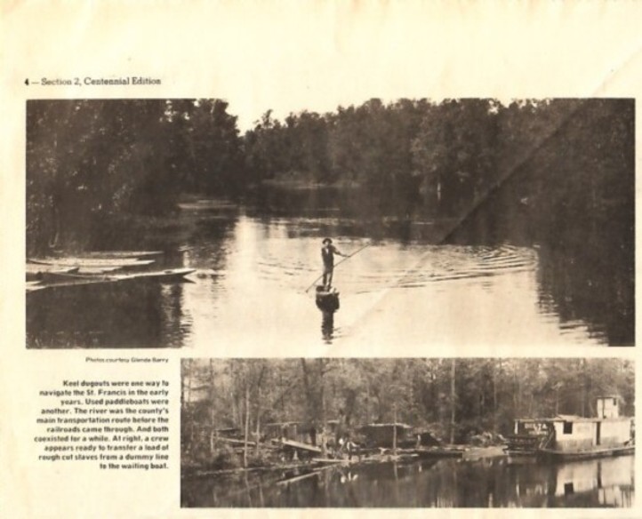 | Photo captions: Top Left Photo: Keel dugouts were one way to navigate the St. Francis in the early years. Used paddleboats were another. The river was the county's main transportation route before the railroads came through. And both coexisted for a while. Photo courtesy: Glenda Barry |