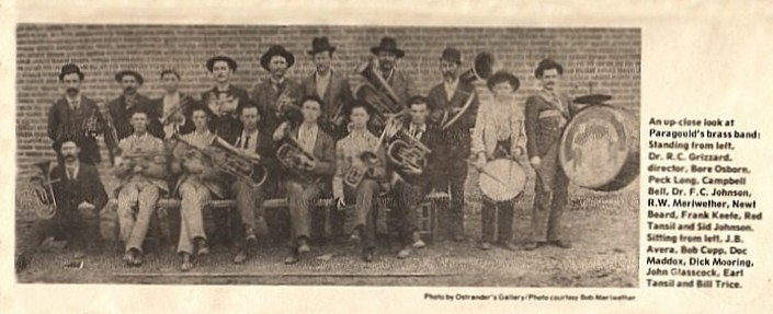 | The Paragould Street Fair September 22-27, 1902, featured | An up-close look at Paragould's brass band: Standing from left, Dr. R.C. Grizzard, director, | |