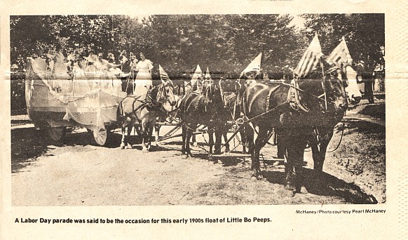 | Paragould celebrated the switching-on of its new "White Way" of 76 street lights in a | A Labor Day parade was said to be the occasion for this early 1900s float of Little Bo Peeps. | |