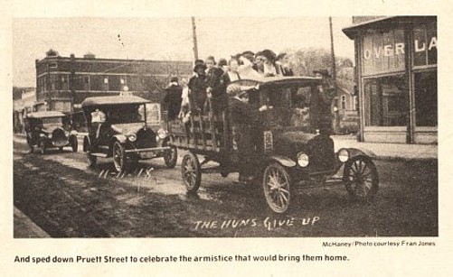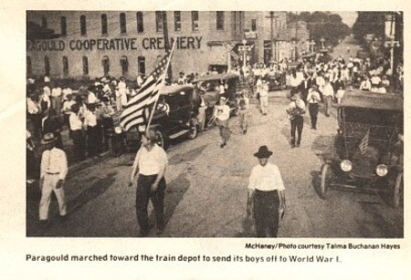 | Paragould marched toward thee train depot to send its boys off to | And sped down Pruett Street to celebrate the armistice that would bring | |
