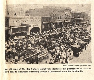 | a parade along then unpaved Pruett Street. At top, the city's | Bore Osborn, Peck Long, Campbell Bell, Dr. F.C. Johnson, R.W. Meriwether, | |