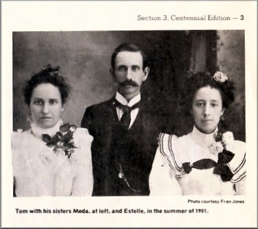 | Tom McHaney-marked with the X-was still teaching school when he posed for this photograph with his students and some of their parents in the 1890's | Tom with his sisters Meda, at left, and Estelle, in the summer of 1901. |