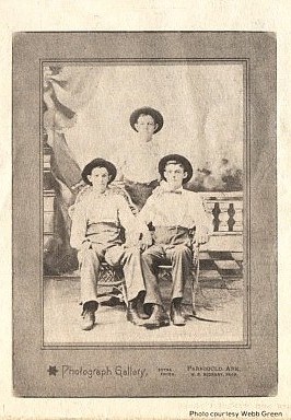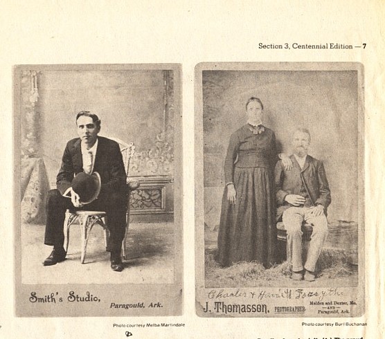 photographs for the remarkably low price of 50 cents per dozen. A Smith's Studio picture of Eva Potter, Allie Stedman, Lizzie Trice and Emma Woodard, not shown here, has an 1896 date pencilled on it. probably by one of the subjects. None of the others has been specifically dated. Twentieth century photographers in-cluded J. Thomas McHaney, Emily Alquest, A.L. Welborn, Hess Bailey and a man named Keller, all mentioned elsewhere in this section. Other Greene County photographers located outside Paragould included James Rasberry at Marmaduke, Ed Scheer and "Lafe" Mueller at Lafe, J.D. Hoffman at Beech Grove and W.J. Phillips just across the county line in Rector. |