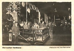 demonstration In about 1926 or 1927, Bill Moore had a livery stable on Highland Street. The front door was on Highland, about where Holland's Home Appliance shop is now. The building was a large structure, probably made of corregated metal. It had a wide passageway down the middle from the large front opening to the large rear opening, with horse stalls on each side. Bill Cannon worked there and one day as a boy I heart Mr. Cannon and some of the adults there arguing about hot to drive a buggy. The large rear doors of the stable closed against a pipe driven into the ground in the center of the passage- way. The pipe protruded about five inches or so above ground level. So with the doors open, the pipe was a stob about 1 1/4 inches in diameter, sticking up about 5 inches in the center of the rear doorway. Finally, to settle the argument, Mr. Cannon hitched a horse to a buggy, took his position in the buggy and started from the front doorway toward the rear doorway. He coaxed the horse to a fast trot and ran both the front and the rear wheels of the buggy directly up and over the top of the stob; that is, the wheels literally rolled over the pipe itself. It was the most amazing exhibition of control over a horse and buggy that I ever saw. Just west of Bill Moore's livery sta- ble, Mun Brannon had a blacksmith shop. This was in the 1925-27 time frame. I used to hang around there watching Mun shoe horses, repair wagon wheels and shrink the metal tire onto the wood or fix links in log chains and the like. Mun had joined a religious group which was, I think, called the House of David. I had read that members of this group did not believe in cutting their hair, fingernails or beards. Sometimes Mun would get to discus- sing these House of David beliefs while I was hanging around there and I can recall that the arguments he would make to those who questioned him were along this line: The Lord made people with hair, beards and fingernails and, therefore, to cut them off was an expression of displeasure with the Lord's creation. Phil Heget |