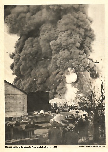 ![]() The massive fire at the Magnolia Petrolium bulk plant Jan 4. 1951 ============================================