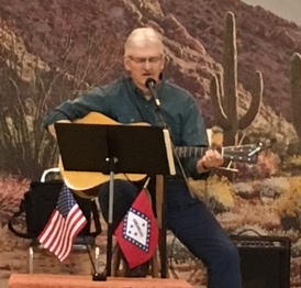 Brockwell, April 8, 2018 - David Blankenship will present a program of music and stories from former times which he learned growing up in Izard County.David was raised in the Calico Rock area and has lived in Izard County all his life except for time in college and the Army. He was school counselor at Calico Rock High School for 13 years. David's music career began when he was 12 or 13 learning to play guitar. He and his dad, Steve Blankenship, played and sang together. He knows many stories from his Blankenship ancestors. David and his wife, Jennifer Faith Blankenship, moved to the Mt. Olive farm on Pelham Creek in 2007. Jennifer's mother is Jeannine Jeffery Faith, and the farm has been in the Jeffery family since Jehoiada Jeffery came to that area in 1816. David and Jennifer have embraced farm life and are almost self-sufficient with what they raise. They are active members of the old Mt. Olive Cumberland Presbyterian Church. David and Jennifer are the parents of two daughters, Megan and Annie, who often play and sing with their dad. David is now partner in Townsends Spice and Supply in Melbourne with his cousin, Shane Linn. | |||