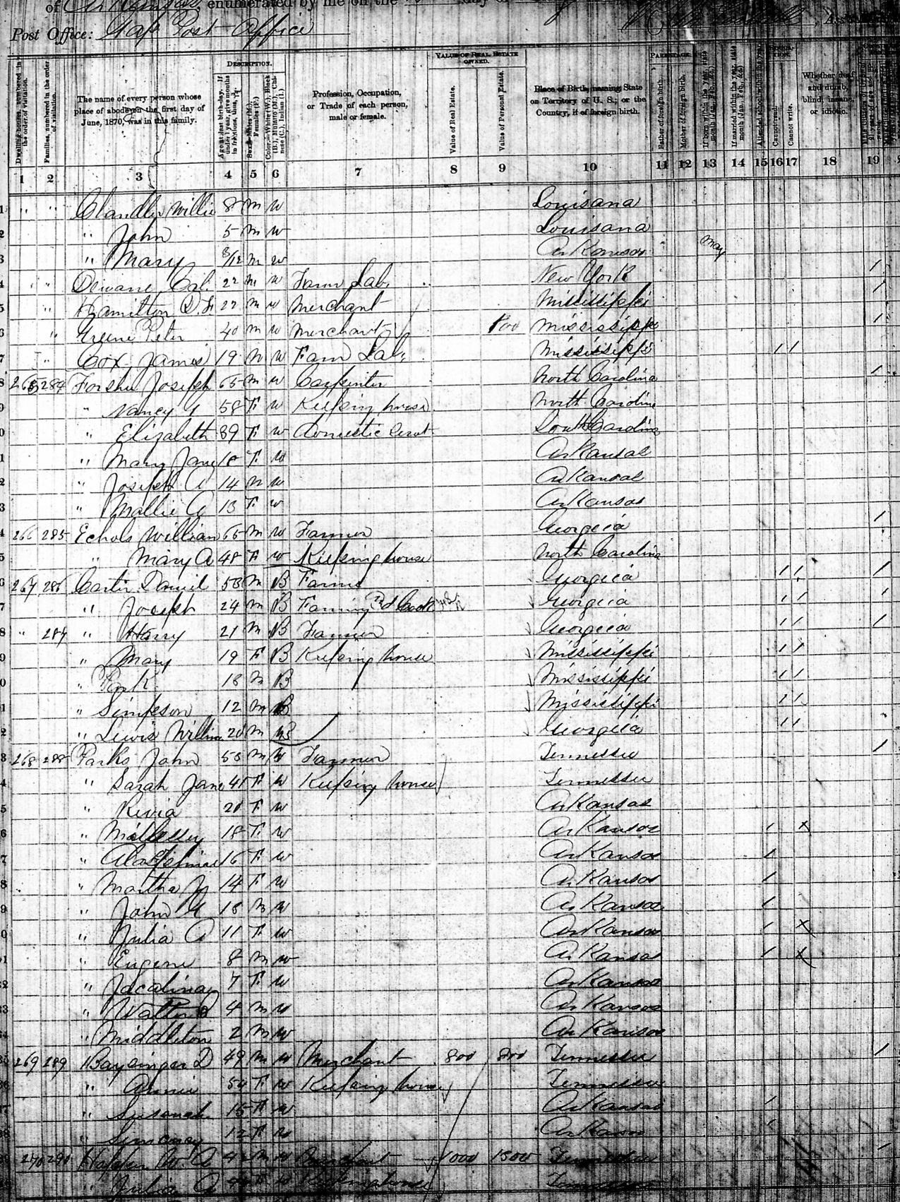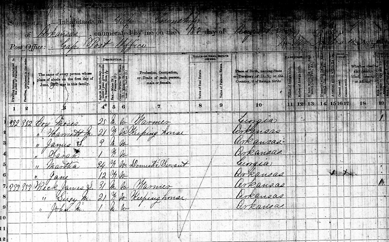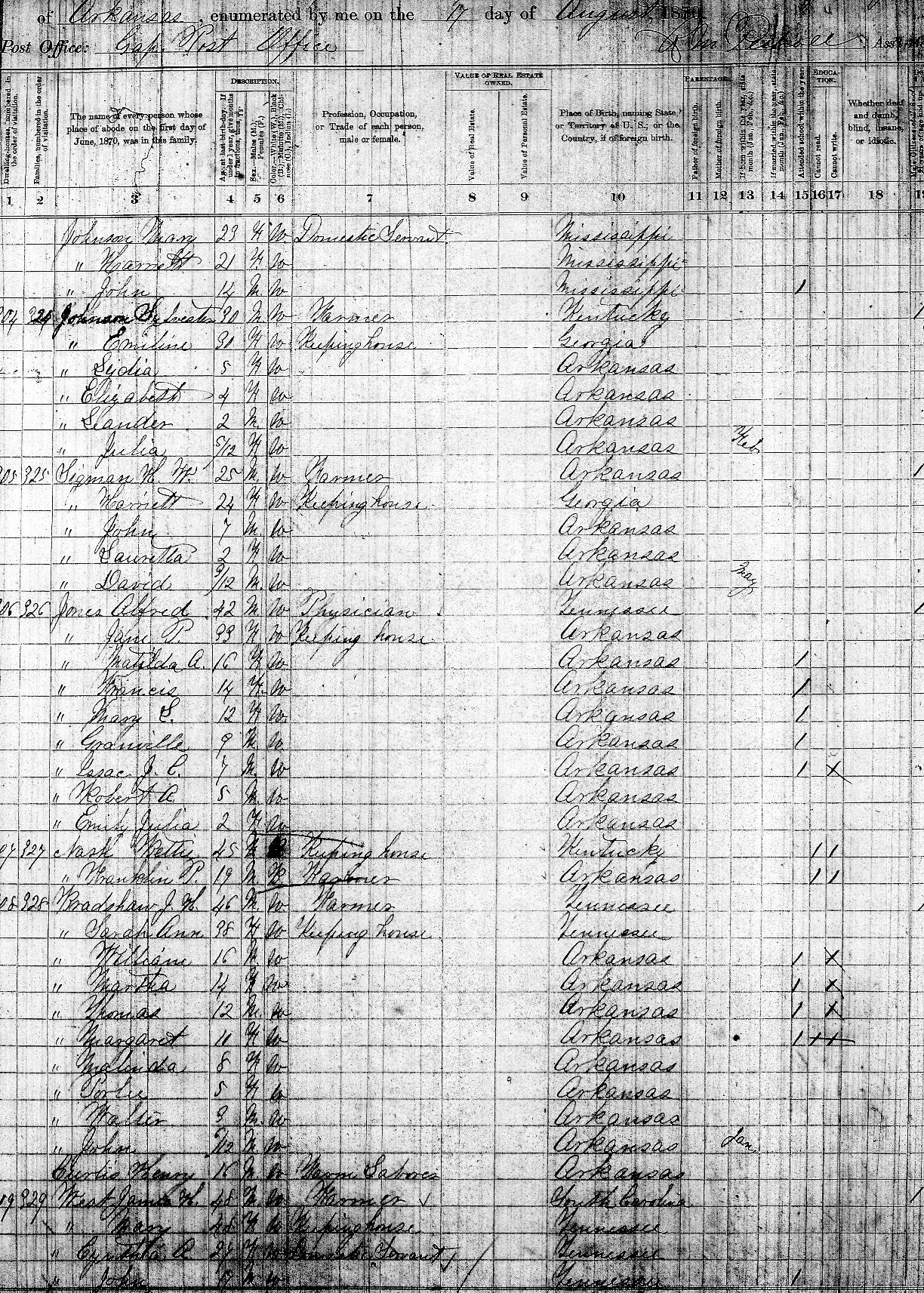 Cox , Jane 12 F W Attended school Cannot write Arkansas