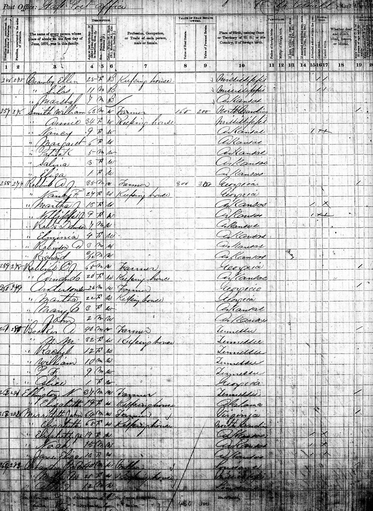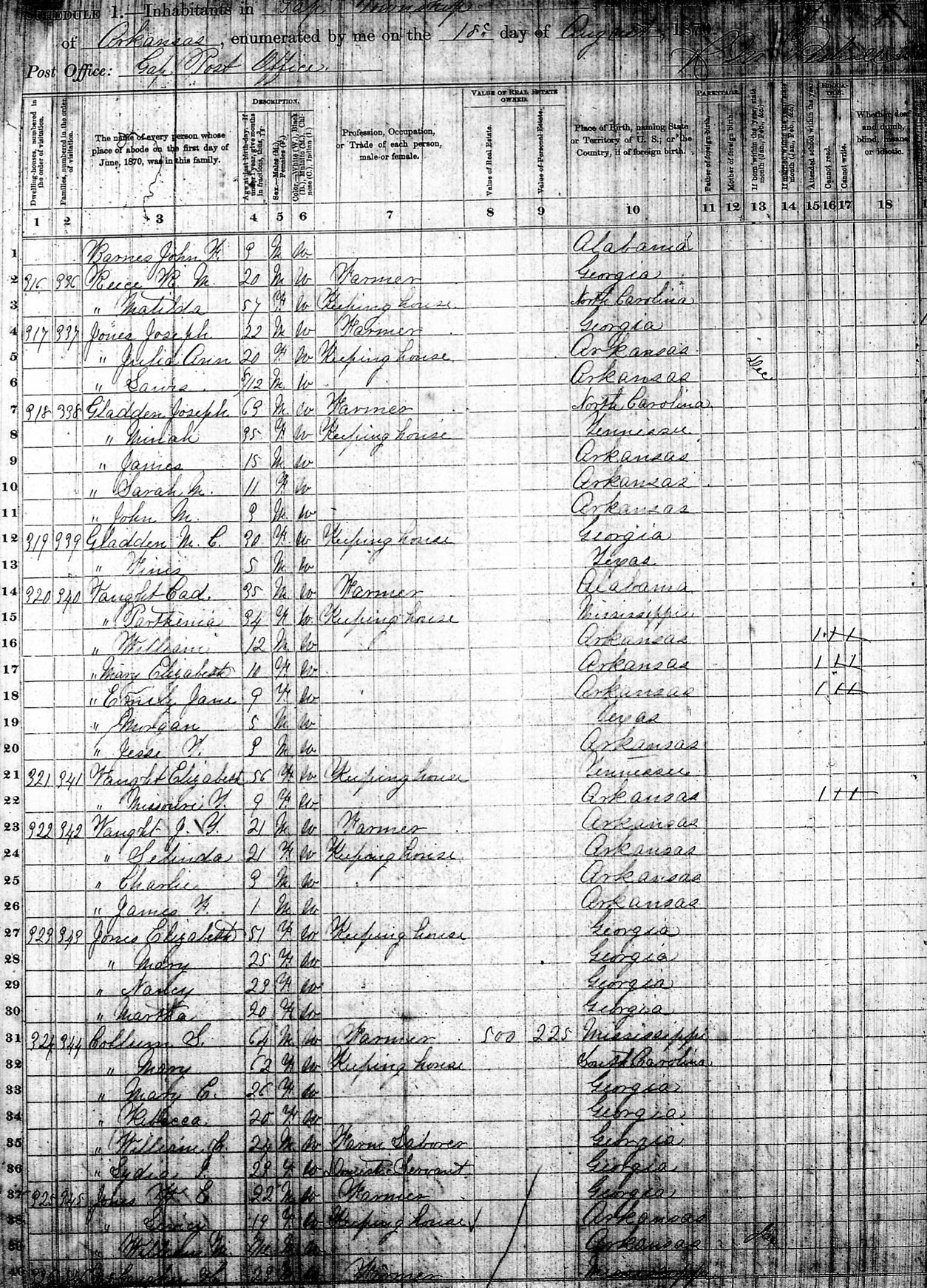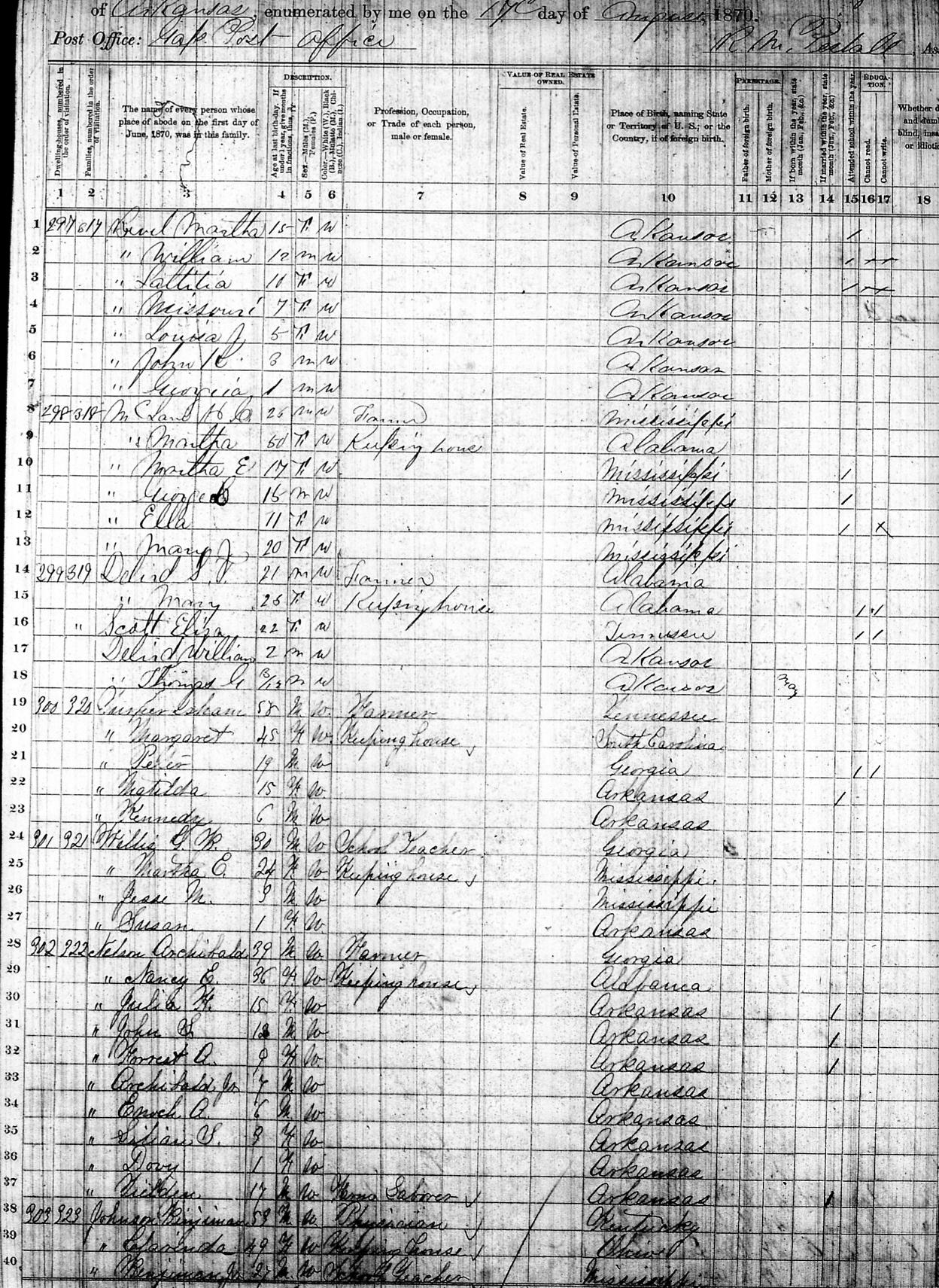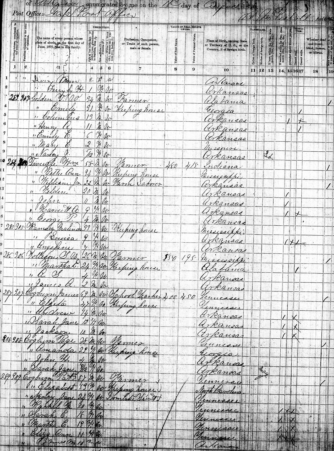 of Arkansas, enumerated by me on the 16th day of August, 1870. Post