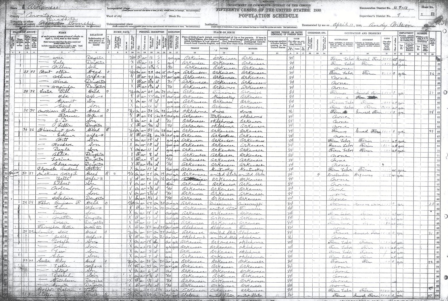 1930 Montgomery Co. AR census images & Info.