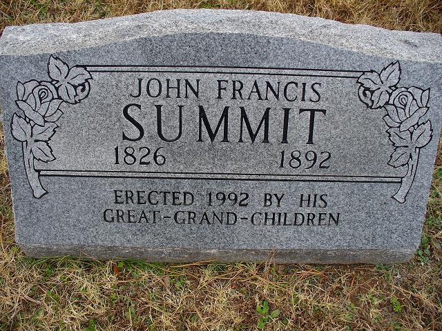 249 Summit, John Francis B: 1826 D: 1892 Stone erected 1992 by his great grandchildren