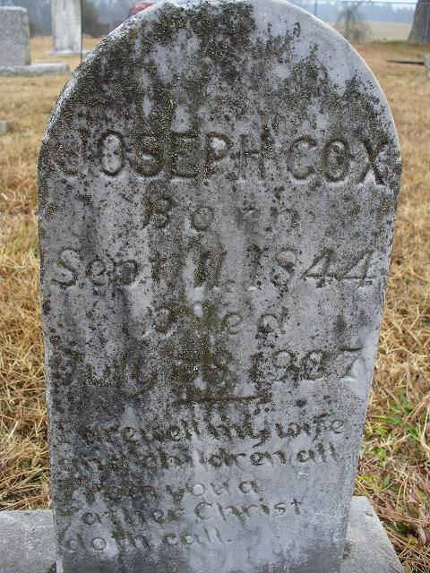 226 Cox, Joseph B: Sept. 11 1844 D: July 19 1907 Farewell my wife