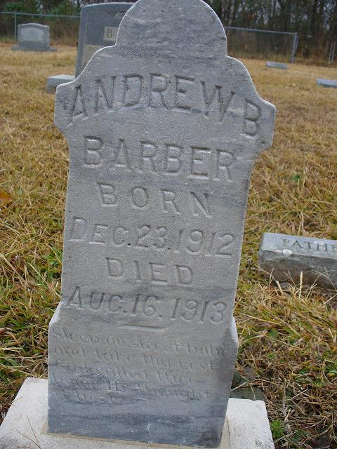 287 Barber B Barber B: Dec 23 1912 D: Aug 16 1913 Sleep on sweet babe and take thy rest. God called thee home. He thought it best.