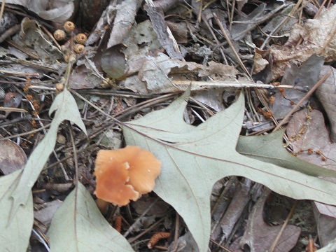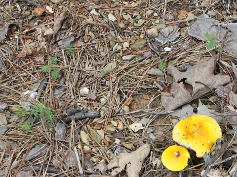 Woodland mushrooms in Montgomery County, Arkansas. "Just view them from a distance, take photos, and look up information about them in books and on the Internet."