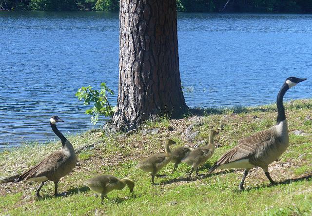 Lake Ouachita - Canada geese and four goslings, 19 May 2009.