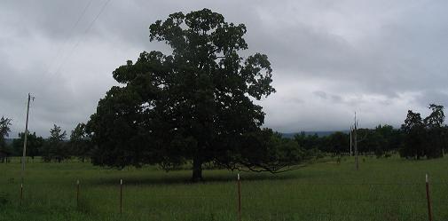 A beautiful old oak tree down Brushy Rd. Note were the cattle have been rubbing the lower branches. May 2005. 0800 in the morning.