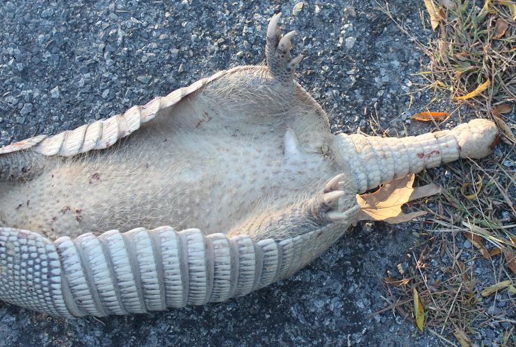 Driving around Montgomery Co. in Oct. 2010, there were very few road kills. They were soon cleaned up by the turkey vultures. You often saw then circling overhead. Smelt a couple of skunks, walked passed a couple of small skeletons probably grass snakes and saw a dead butterfly and a whitetail deer dead on the side of the road. In May the roads are just covered with turtles trying to cross. In June saw a couple of dead squirrels and skunks and that is about it. The busier the road the fewer road kills. Amos