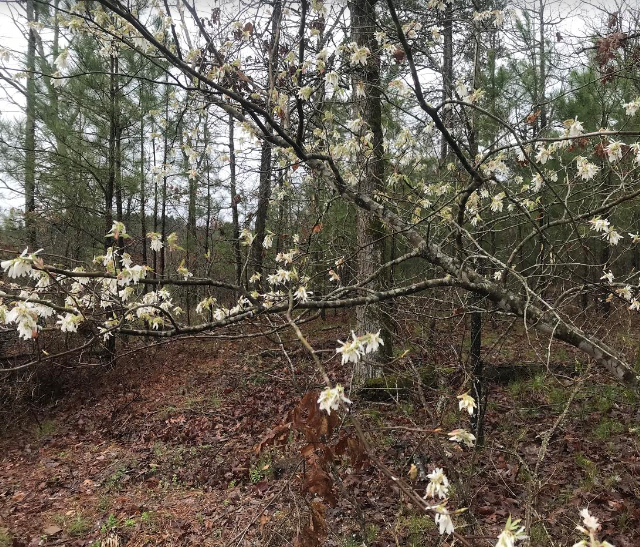1928: Here only a few years ago roamed great numbers of deer and turkey; here also were many bears and foxes, and a little further to the east of the Ouachita River there were beaver. Quail also raccoon and 'possum may be found along water courses. The streams abound with fish. A great variety of forest trees and wildflowers. On the heights may be found cedar, mountain laurel, rhododendron, locust, cucumber (magnolia acuminata) hickory, red and white oak. Lower down, the pin oak, blackjack oak, chinquapin, elm and beech. Along the water courses, cottonwood, sycamore, water oak, gum and dog wood.