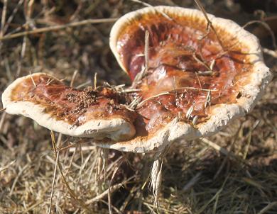 Hen of the Woods (Grifola frondosa), tend to grow on stumps, on bases on trees, note if growing on hardwood or conifer.