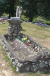 12 June 2001. I re-walked the cemetery one afternoon doing a spell / date check and looking for the headstone inscriptions mentioned in the cemetery books. Didn't find them. Decoration Day was the 3rd Sunday in May. FS stands for field stones that are no longer present. All the field stones, I counted 35, that added character to the cemetery, had been removed and thrown over the bank at the back of the cemetery including I.P. ____ born Dec__, died March 14 18_5 etched on one stone. Why? It probably makes mowing easier.