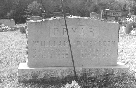 Thursday 22 March 2001 at 3 p.m. there was a funeral at the Methodist Church, Oden, so went back down later that afternoon to complete the task. The new grave was near the Cagles. The backhoe had accidentally bumped two large headstones Hopper and Fryar and twisted the headstones and made the William Fryar stone move on its base.