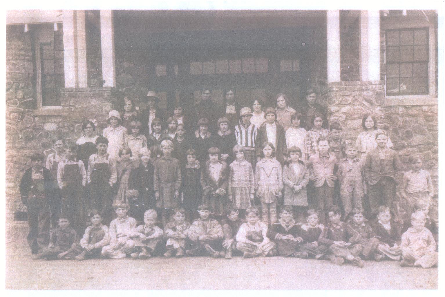 Who is the teacher? A lady standing behind the boy wearing a jacket to the right of the photo.Ode Maddox was a ninth grader at Oden in 1929.