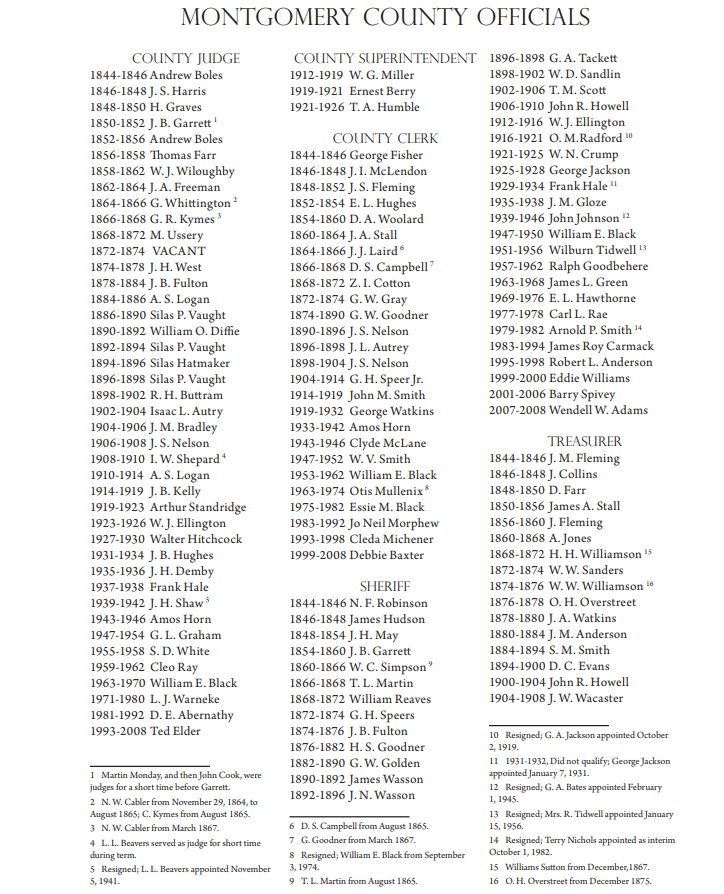 Officials of Montgomery County, Arkansas 1886-1958