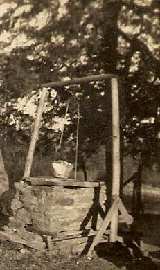 We had a well in our yard, very near the house, just west of the Macedonia cemetery - going toward the Old Central School house, that was used for "drinking water". The water was very good and was so refreshing on a hot summer day. We had a nice shed built over our well and vines grew on two sides of the shed, giving shade underneath. The water from the well in the pasture was used to fill the black, iron wash pot that Mama boiled the white clothes in. Also to fill the two tubs, one was used to wash the colored clothes and the other to rinse the clothes in. That well had no shed over it, so there was no place for a pulley to run a rope through. It was covered with boards. I would only put back one of the boards when I would pull up a bucket of water. We just had a bucket tied onto a rope that we threw down into the well and pulled up the bucket of water. It was not very deep and when the creek nearby "was up" the well water was up also, nearly even with the ground. Sometimes it even looked a little muddy and we couldn't wash then. My brother, Lem, built my Mom a "washhouse" and we thought that was so fancy! It took her all morning to do the washing. I can remember that the wells were "cleaned out" once in awhile, but none of my family members would do that. There were men that did "well cleaning". I remember the cover on our well in the yard. It just looked like a small screen door that you would raise up and let down. Our well had no pump. We didn't have electricity in that house until 1948 I think. I had left home already when they finally got it. Wanda Adams nee Kelly. Posted June 2001.