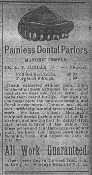 Painless Dental Parlors - Dr. H.P. Jordan - Masonic Temple |
