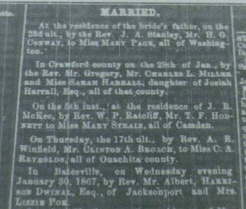 February 5, 1867 Marriages