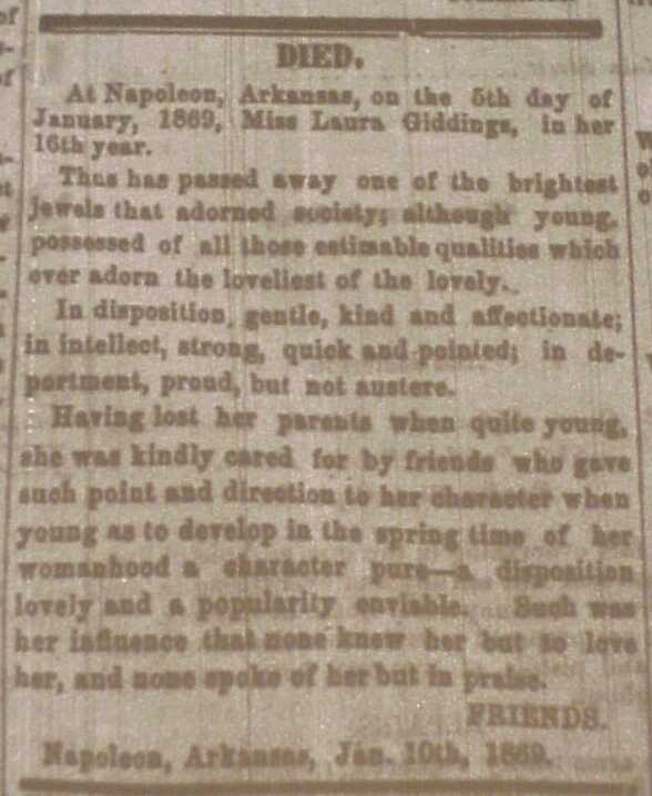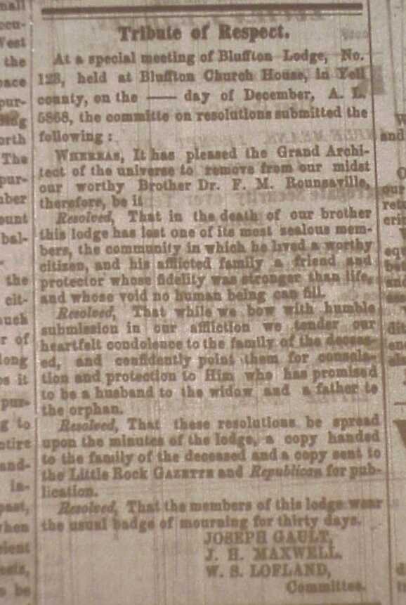 Arkansas GazettePlease Note- These are actual images from the Arkansas Gazette that may load slowly. These are all of the marriages and obituaries that I could find in the paper for this time period and covers the daily and weekly state Gazette. Scattered here and there are notices and announcements. |