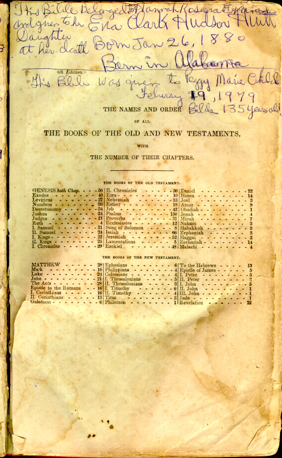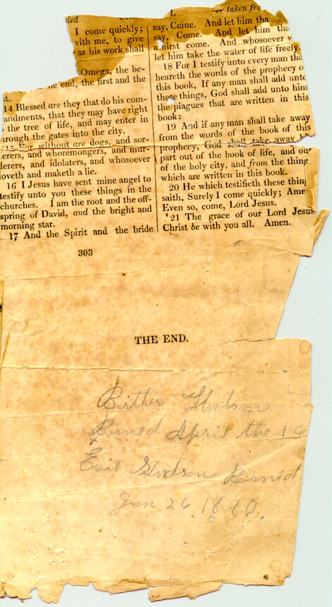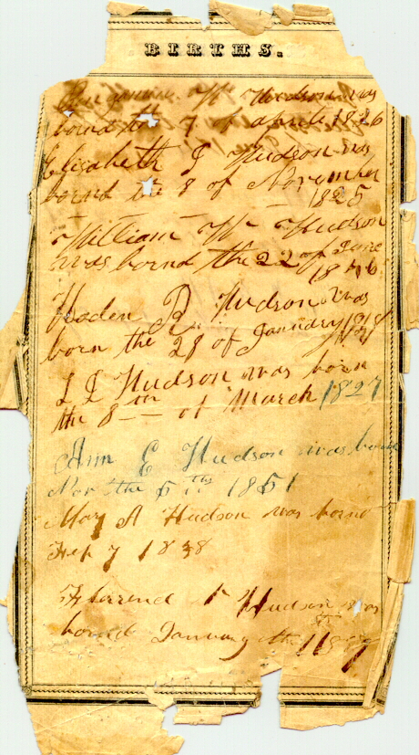 Family Bible Record of Asa Bertrand Hill and Elizabeth Daye Duncan Hill