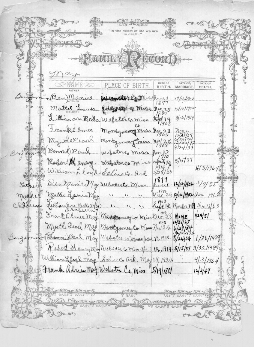 MR. and MRS. JAMES O. LOVE FAMILY RECORD