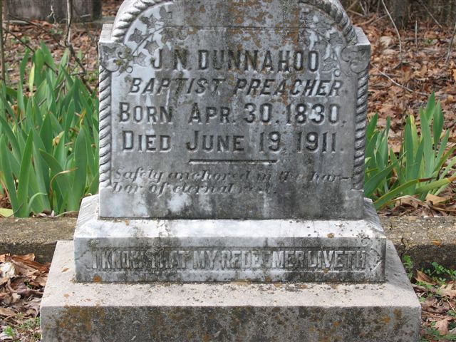 Dunnahoo J. N., (Baptist Preacher) Tombstone Image April 30, 1830-June 19, 1911