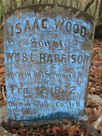 Isaac Wood, son of Wm. And Louisa (Broken Tombstone) Tombstone Image Born in Hot Spring County, February 12, 1862