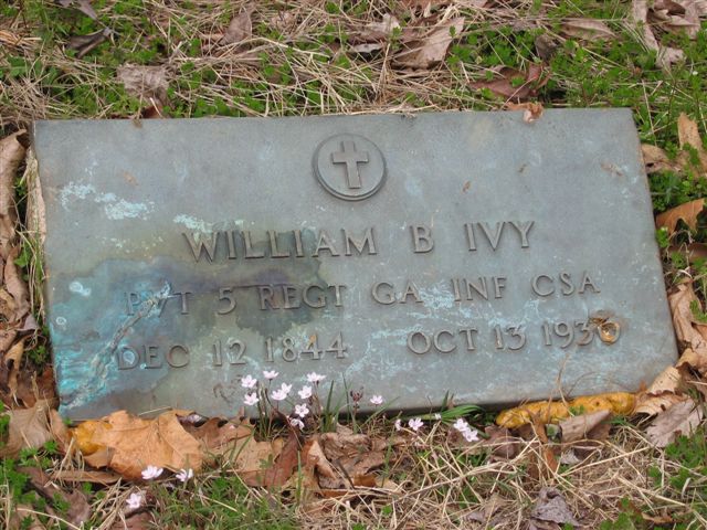 Ivy William B. Tombstone Image Pvt. 5 Regt. Ga. Inf., CSA December 12, 1844-October 13, 1930