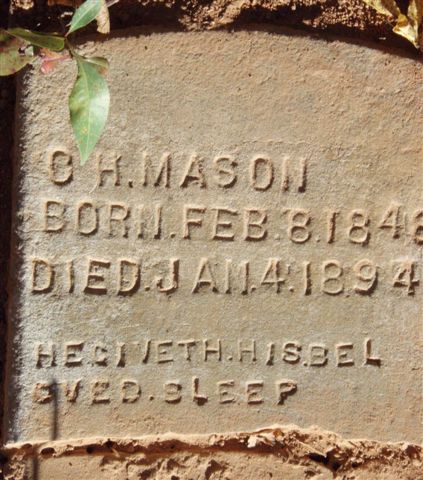 {Mason C. H. Tombstone Image Feb. 8, 1848-Jan 4, 1894 "He Giveth His Beloved Sleep"
