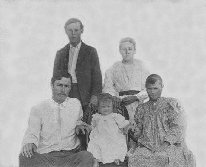 Sitting L-R Samuel Lafayette "Lath" Doyle, his daughter Francis Viola "Vi" and Martha Francis Hughes-Doyle. Standing George Thomas Doyle, brother of Samuel and Carrie Ann Hughes-King, sister of Martha Francis Hughes-Doyle. The photo was taken in 1899.