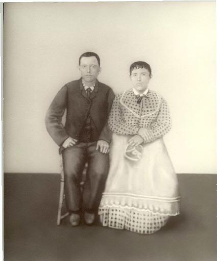 This is a photo of Anna (Annie) Ezell-Doyel and her brother George Price-Ezell. The photo was taken in 1880. Anna and George were the children of Hiram Lafayette and Jane Jincy Seaton-Ezell. The Ezell family lived in Logan and Scott County, Arkansas. They are found in the 1880 Census of Logan County living in the Roseville Township. Anna married Samuel Lafayette Doyel, Sr. son of Farmer and Mary "Polly" Newberry-Doyel. Anna died in the early 1900's. She is buried somewhere in LeFlore County, Oklahoma. Anna and Sam had six children: Samuel Lafayette, George Thomas, Susan Ann, James V., John H. and Mary Jane. Mary Jane married Thomas Shadwick and after his death, she married Alec Luman. George Thomas Doyle (George is the Doyle that changed the spelling from Doyel to Doyle) married Mary Alice Elliott, daughter of Benjamin Ell! iott and Sarah Leath. After Mary Alice died, George Thomas married Jane Forehand. George died in 1971 and is buried in Heavener, Oklahoma. Sam and Anna's son, Samuel Lafayette Jr., married Martha Francis Hughes-Doyle. Sam and Martha are listed in the 1910 Scott County Census with their children: Vi, Pearl, Sam, William, Maude, Mary, Mandy, Emma and Cornelia. Sam and Martha both were born in Logan County, Arkansas. This photo belongs to Paula Doyle-Bicket who will be glad to exchange information about this family.