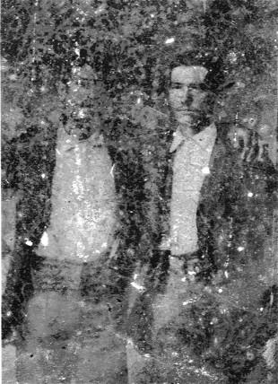 This tintype was my g-g-g grandmothers. She was Nancy Ann James, born c1841 in Saline Co., AR to Claiborn and Jane C. (Boiles) James. Nancy married John Chaple Bates about 1872 in Scott Co., AR. Their two children were born in the Dutch Creek area of Scott Co. John and Nancy moved to Silver, Montgomery Co., AR in 1880. Nancy's family lived in Saline and Scott Counties. I believe these men are from the James family. I was told by many family members that they were Jesse & Frank James (the outlaws) but have found that not to be true. If you can identify these men please contact Cindi.
