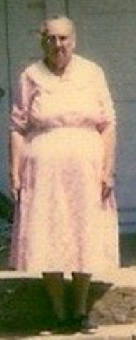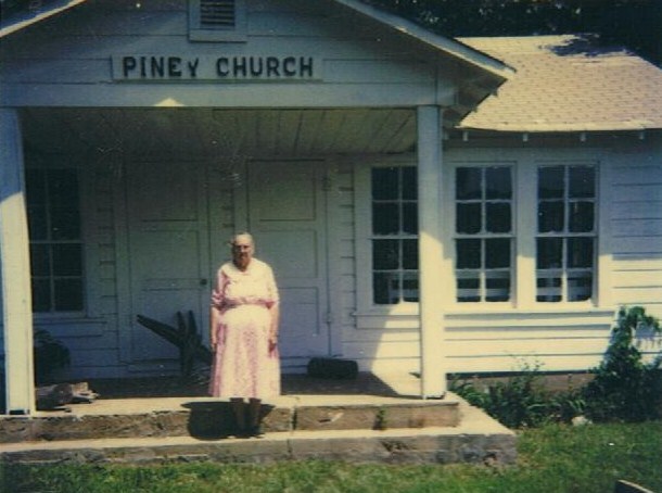 she is standing on the porch of Piney Church. The picture is one of those taken by a polaroid