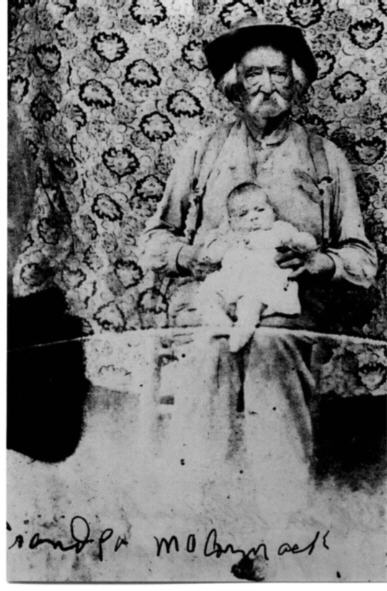 Pictured above is William A. McCormack holding a baby. The baby belongs to a brother of Edward Elrod. Someone wrote on the picture: Grandpa McCormack and I think that was a good idea. Contributed by the late Billie Cencarik.