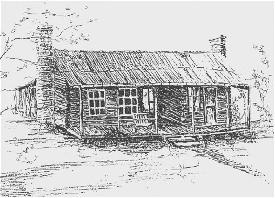 Pictured above is William A. McCormack's old homeplace, over 100 years old, in Little Texas, Scott County, Arkansas. This picture was taken by the late Billie Wilkins Cencarik on May 25, 1998. Her daughter Kay is on the porch and her cousin Evelyn McCormack is taking pictures. This old homeplace was completely torn down about 2001. Below is an artist's sketch of what the old McCormack place in Little Texas might have looked like about a hundred years ago. Artist unknown.