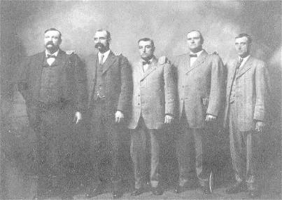 The Russell brothers lived in Scott, Co. AR. 1870-1880. Sons of William Russell and Mary Ann Taylor Russell. Pictured above, Left to Right are: Elija Daniel, William James Sims, George Morgan, Charles Hon and Robert Franklin Russell.