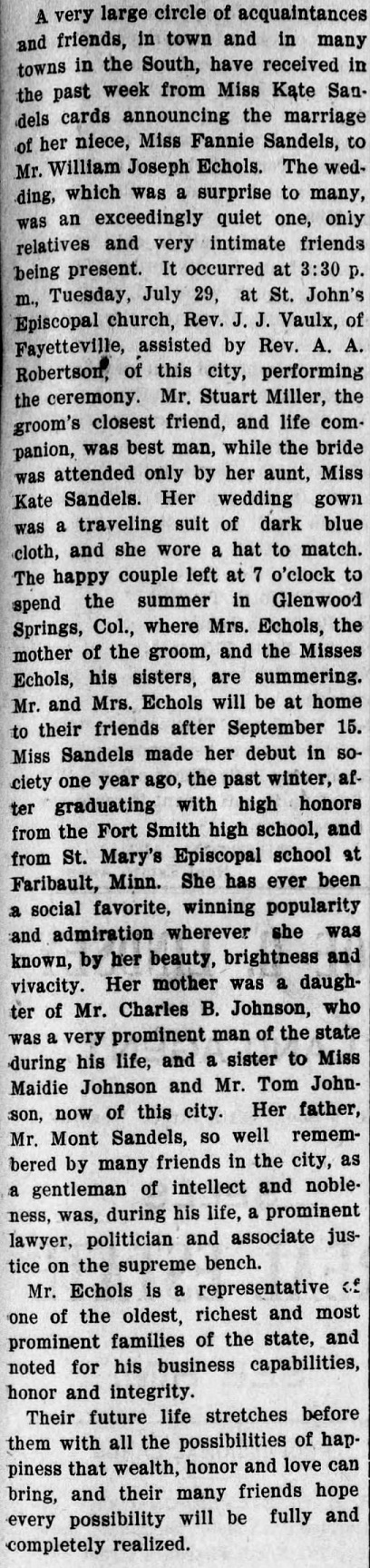 at Fort Smith), married William Joseph Echols, II on July 29, 1902, at Fort Smith.